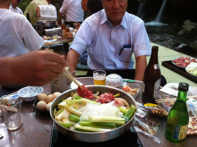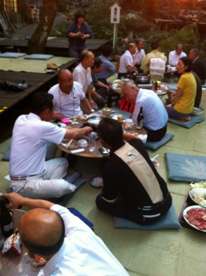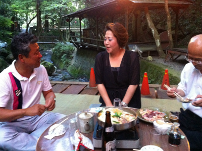温暖化ガスの影響でしょうか、猛暑、酷暑が当たり前になってきた感のある日本の夏ですが、今年は極め付きで暑かったように思います。 それを一時忘れるため、毎年恒例となりました日吉大社内にございます日吉山荘さんでの納涼例会を開催致しました。 大社内は木々が豊富で海抜も高いため涼しく、夕闇を照らす提灯の明かりの下、森林に包まれて静寂の中、川のせせらぎを聞きながらお酒をいただきつつスキヤキを食しました。毎年のことながら本当に贅沢な気持ちになれる素敵な納涼会です。 また本日は、新入会を予定しておられます野口さんもオブザーバーとして参加いただきました。楽しんでいただけたなら幸いです。どうか今後もよろしくお願いします。 |