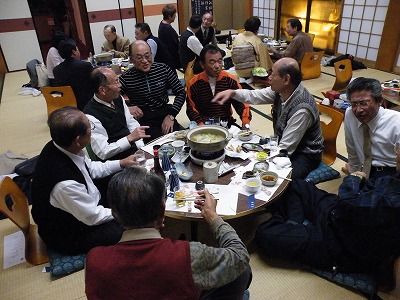 すっかり秋も深まり冬の気配も漂い始め、今が見ごろの紅葉鑑賞に日吉大社の芙蓉園さんに出かけました。 とは云うものの残念ながらこの日はお天気が悪く、我々が到着後には雨が降ってきたためあまりじっくりと観ることはできませんでした。一部ライトアップされていましたのでそちらの写真を掲載しました。 幹事報告、委員会報告、お誕生日のお祝い後は皆さん外の景色はそっちのけにお食事とお酒を始められ、盛り上がりました。肌寒い夜に湯豆腐がぴったり。 次回は12月8日、琵琶湖ホテルに毎年恒例の松山先生指導による大津絵体験です。お楽しみに。 |