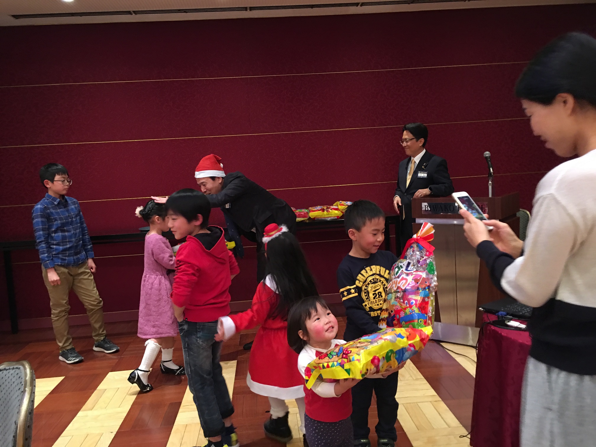 毎年の年末家族例会はクラブ一大イベントとなっております。家族のご理解ご協力への感謝を込めて楽しい例会になるように、クラブ役員の皆さんが頑張って企画しています。今年も大成功のようです。ご出席の皆さま、どうもありがとうございました。来年もよろしくお願いいたします。 **例会開始に坂井会長から2018年のクラブ活動の発表がありました。 わかりやすい内容で、会員、会員の家族もライオンズクラブへの認識が深めたと思います。