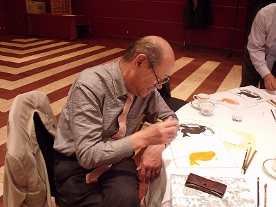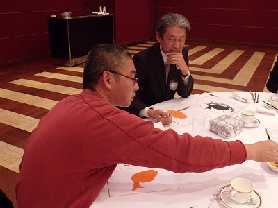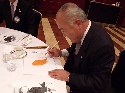 12月第一例会は毎年年末恒例で大津絵を描くことになっております。講師はもちろん高橋松山先生です。
