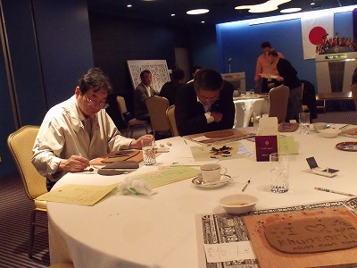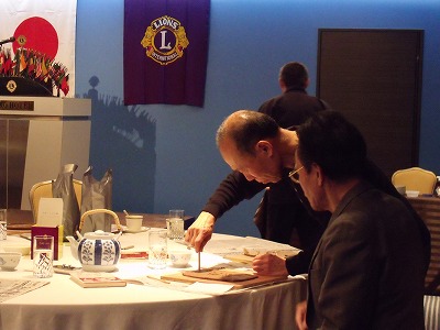 当クラブに今年もまた新たな仲間が増えました。総合建設業の株式会社ケイジ―の池田勝明社長です。入会式では少し緊張されたとのことですが、L池田、どうか今後も末永くお付き合いの程宜しくお願いします。 さて、今回は「陶器と遊ぼう」と題し、L岸本指導の元、皆で陶板・表札・お皿などの制作で楽しみました。早々に作り終え他の人の作品を覗き見る人、一心不乱に集中している人、凝り過ぎて時間が足らなくなった人と様々でしたが、短時間の割には概ね皆さん中々凝った出来栄えに御満悦の御様子でした。焼き上がってくる6月第一例会が楽しみです。 |