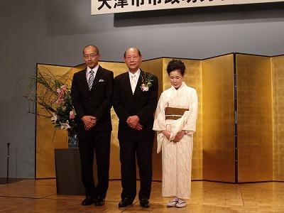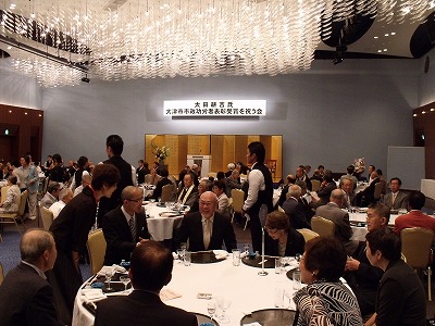 長年、伝統工芸として組み紐作りに取り組まれ、大津市の名産として世に広く知られるまでになったその功績と、おなじく長年に渡り民生委員等地域の為に尽力されてきた功績とを称え、この度当クラブの前幹事、L太田が大津市市政功労者表彰を受賞されました。本日は当クラブをはじめL太田に関わりの深い各種団体有志によりその祝賀会が開催されましたので、その様子をご覧いただきます。 本来でしたら今年3月19日にこの祝賀会を予定しておりましたが、3月11日に発生した東日本大震災を受け一旦延期とし、ようやく本日開催に至りました。 当日は目片大津市長をはじめ、100名にも及ぶL太田に所縁のある方が多数出席され、当クラブ会員も普段の例会以上の出席率でした。これもひとえにL太田のお人柄によるもの。出席者皆心からL太田の受賞を喜んでおられることが伝わってくる、非常に温かな祝賀会でした。 どうかこれからも健康に気をつけながら、いつまでもお元気で各活動をお続け下さい。 |