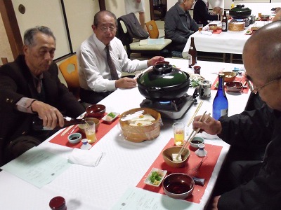 11月第2例会は今年も恒例、紅葉狩りです。日吉大社内にあります芙蓉圓さんの別館にて、お庭の紅葉を鑑賞しつつ、湯豆腐とお酒をいただきました。折しも本日は冷え込みが厳しくなっております。こんな時の湯豆腐は最高ですね。やはり皆さん紅葉はそっちのけでお料理とお酒を楽しんでおられました。