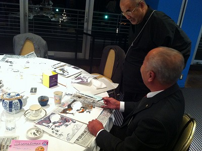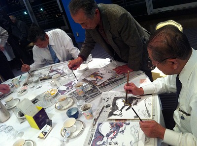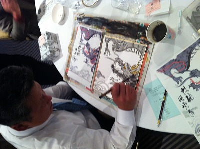 毎年年末恒例、大津絵です。今年も大津絵第一人者で当クラブ会員でもありました高橋松山先生を講師にお招きし、来年の干支「龍」を描きました。