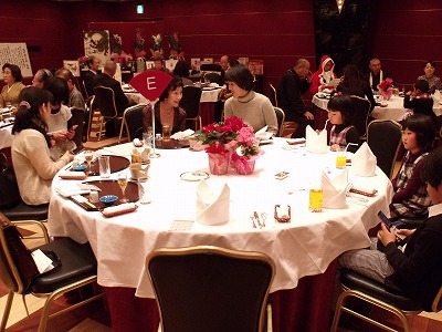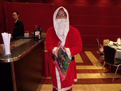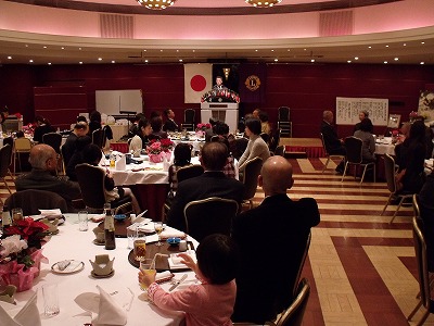 大きな災害が立て続けに起こり大変だった2011年も、いよいよ大詰めとなりました。苦しいこと、嫌なことを最後は笑って吹き飛ばしたいとの思いから、今年も恒例のクリスマス家族例会を琵琶湖ホテルさんにて開催致しました。 会食中皆様にお楽しみいただけるよういつも出し物をご用意しておりますが、今回はなんと「のこぎり演奏」!です。「のこぎり演奏家」の皆様にお越しいただき御披露願いました。バイオリンのように弓を使って弾いたり、のこぎりで叩いたりして音色を操り、自由自在に演奏をされます。S字型にくねらせるのがコツのようですがこれが非常に難しい。子供達やライオンがチャレンジしましたが中々良い音は鳴りません。また、世界最古の電子楽器と言われている「テルミン」も伴奏していただき、その不思議な音色と不思議な演奏方法に皆興味津津でした。 また今回は、食事を終えた子供達の為に独楽や輪投げ、紙飛行機など昔ながらの玩具で遊べるコーナーを設けましたが、むしろライオン達の方が童心に帰って楽しんでおりました。 途中、L馬渕が扮するサンタクロースからの子供達へのプレゼントや、会員が持ち寄った品物のオークションがあり、大いに盛り上がりました。オークションの売上はバザーの売上と合わせて、寄付等の事業費に遣わせていただきます。 子供達含め60名を超える参加をいただいた今回の家族例会、3時間たっぷりと楽しんでいただけたのではないでしょうか。また来年も皆様お越し下さいますよう心よりお待ちしております。 ご紹介したい写真が多くある為今回は3回に分けて掲載させていただきます。掲載分以外にもたくさんの写真がございますので、御要り用の方はお気軽に事務局にお問い合わせ下さい。 |